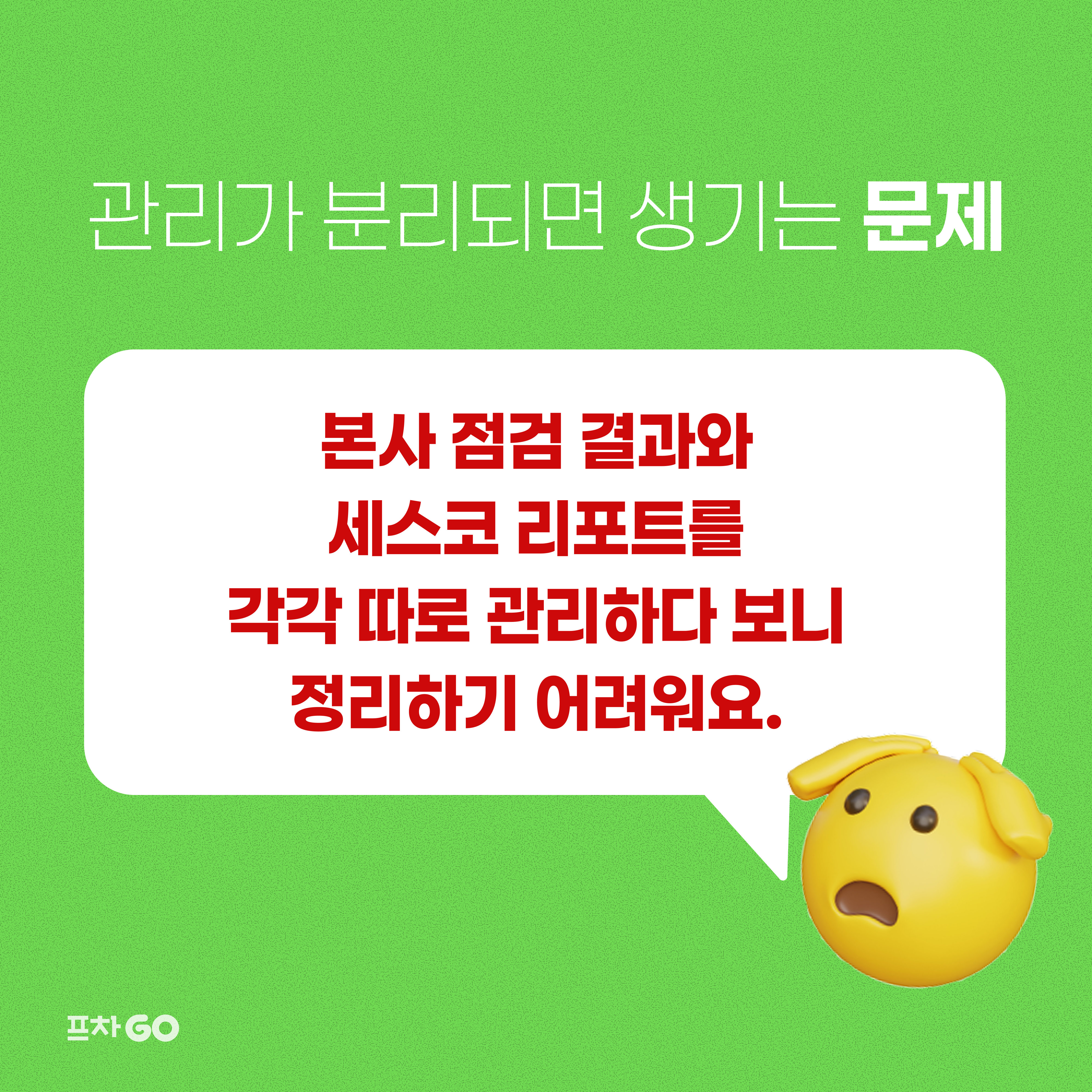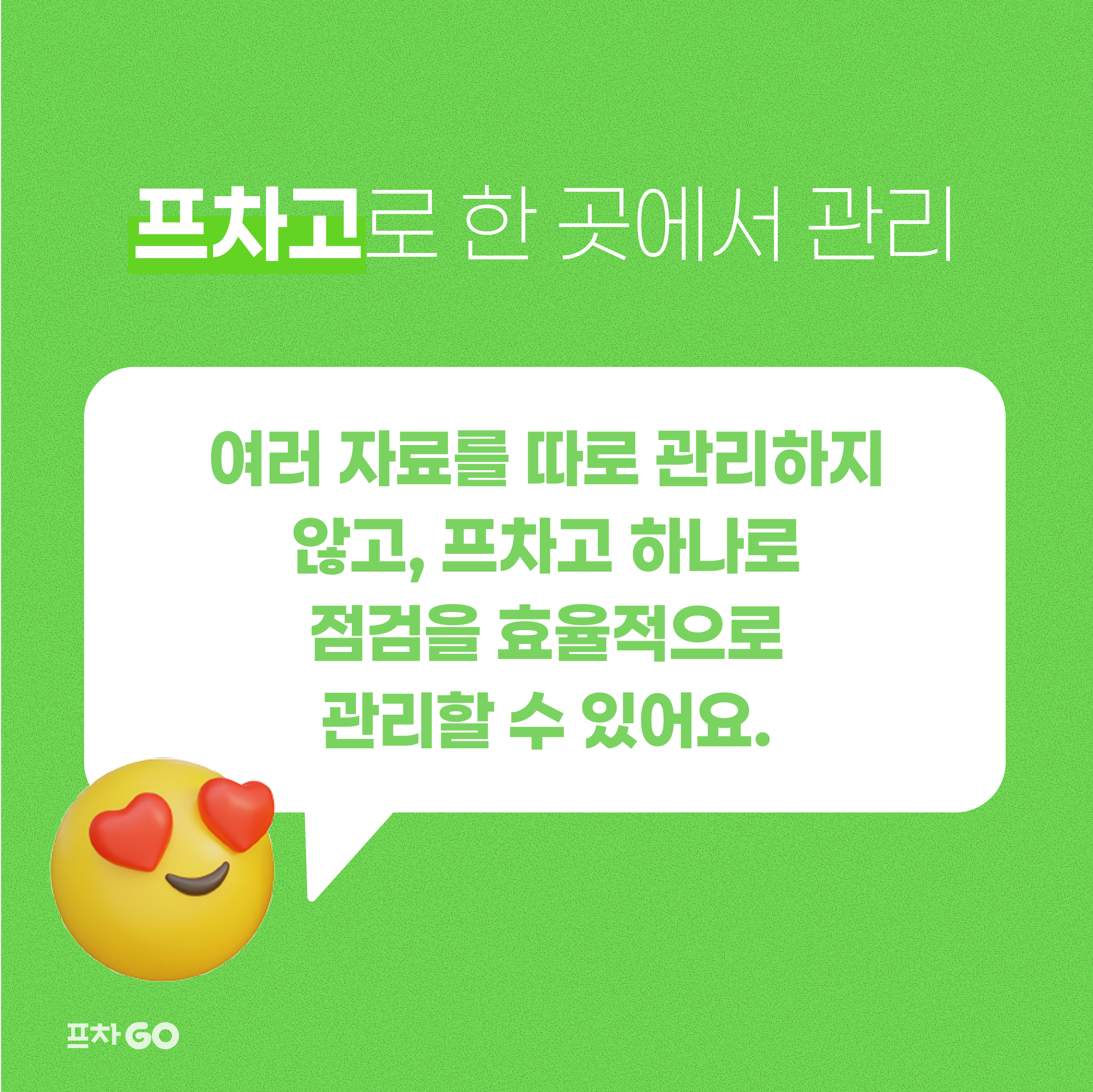프차고 하나로 모든 점검을 간편하게 확인하고 관리할 수 있습니다.