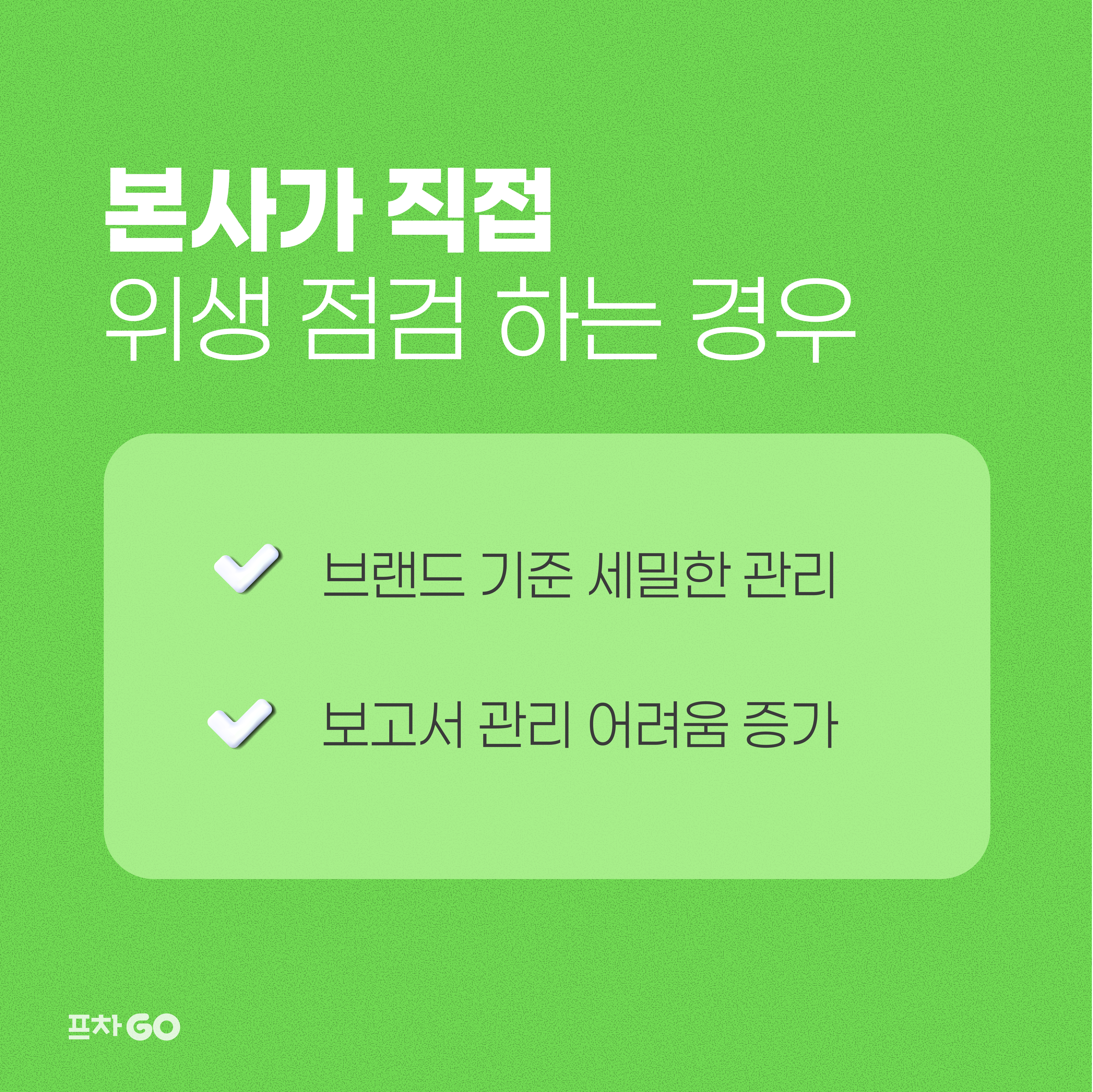 본사가 직접 점검하면 브랜드 기준에 맞춘 관리가 가능하다는 장점이 있어요!