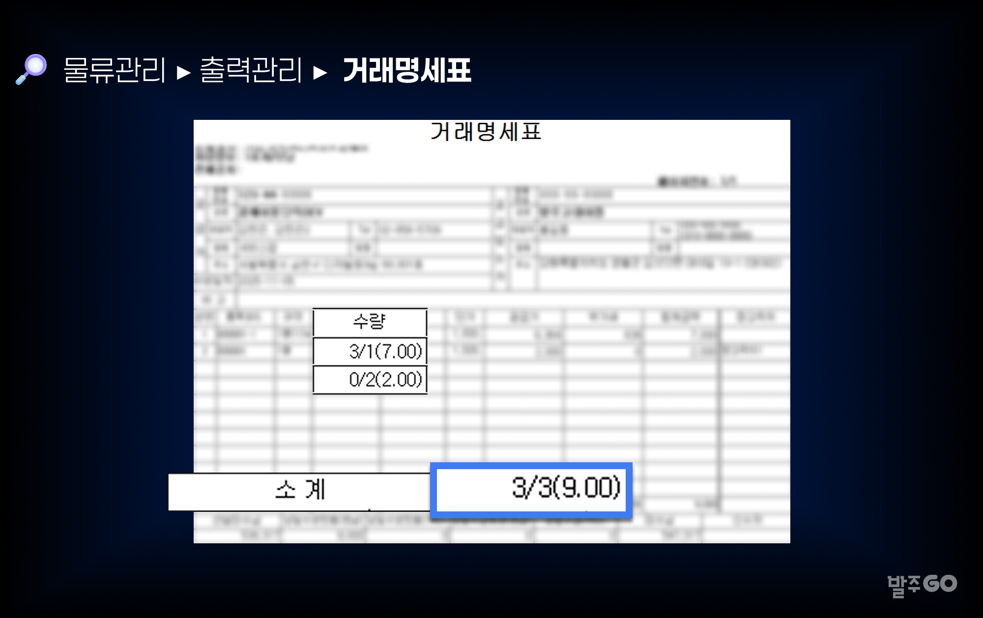 거래명세표와 Picking List 출력의 소계 항목에서