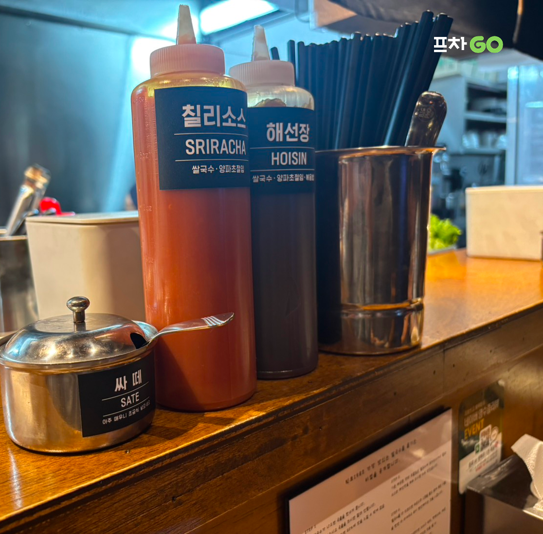 매장 테이블마다 해선장, 칠리소스, 매운 소스인 싸떼까지 구비돼 있어서