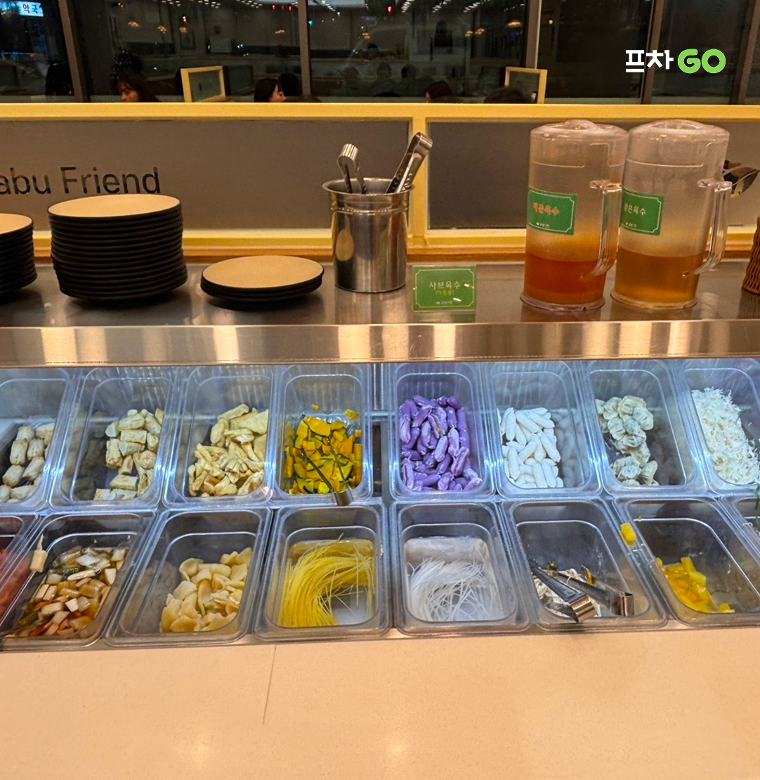 샤브샤브용 야채는 셀프바에서 자유롭게 가져오는 방식이라 원하는 만큼 리필이 가능해요.