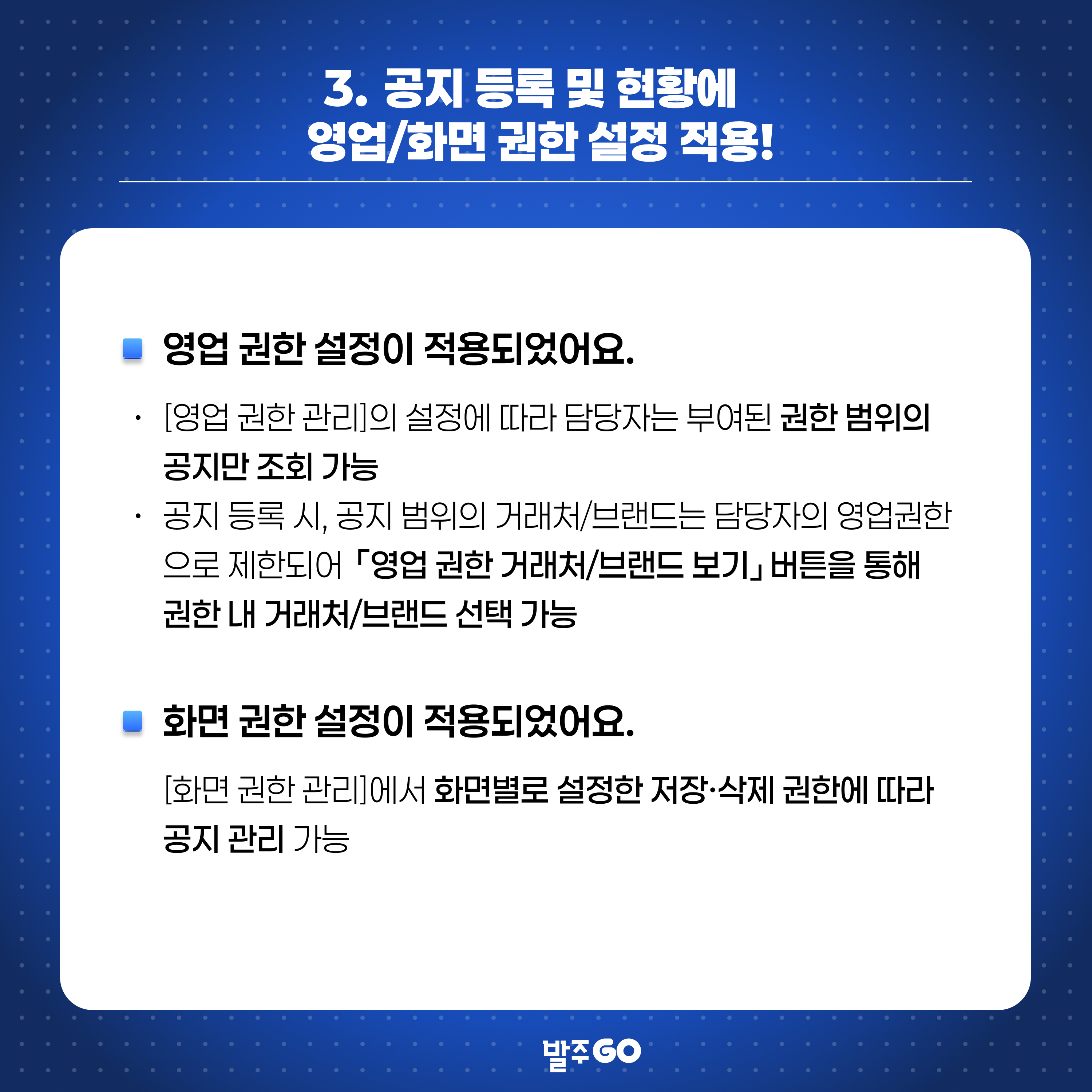 3. 공지 등록 및 현황에 영업/화면 권한 설정 적용!