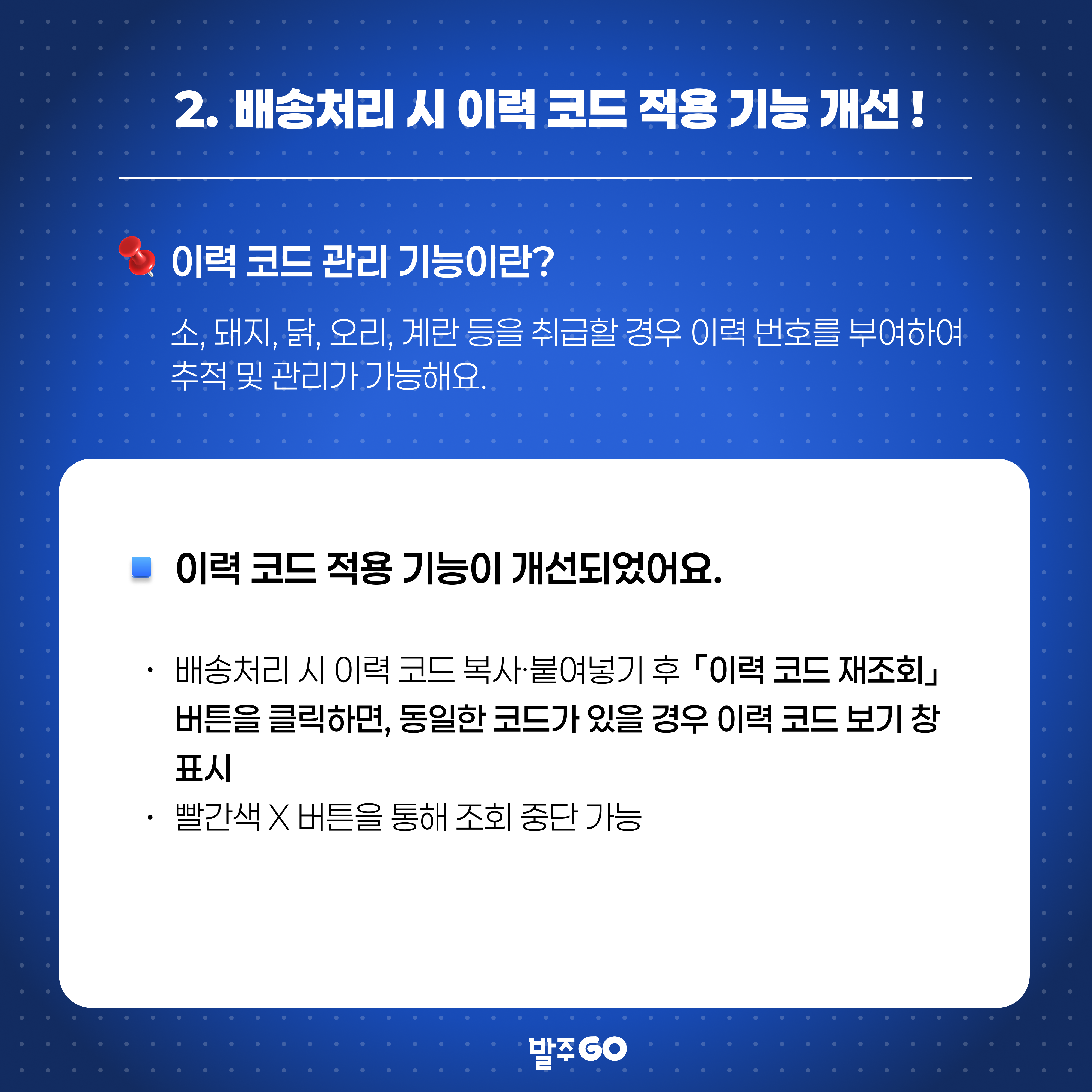 2. 배송처리 시 이력 코드 적용 기능 개선!