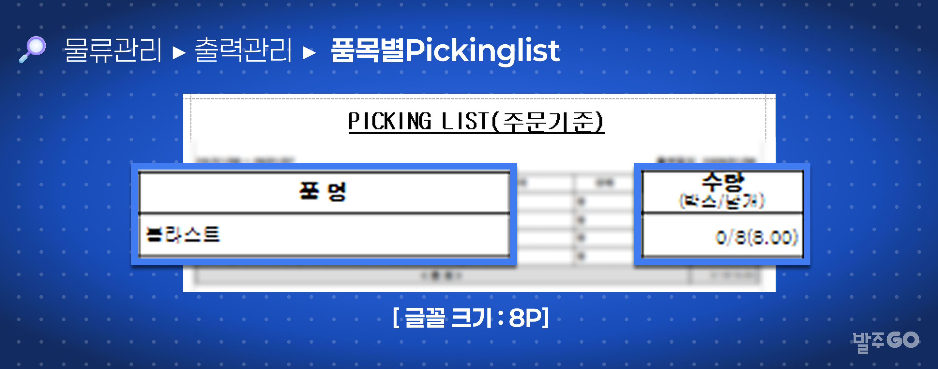 Pickinglist 조회·출력이 가능해요.