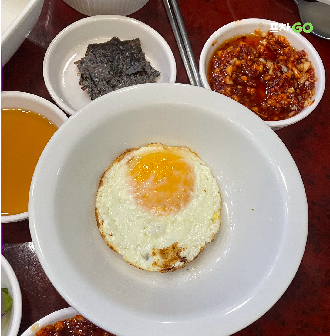 밥과 계란이 무료라 계란을 구워 함께 먹으면 든든한 한 끼가 완성됩니다.