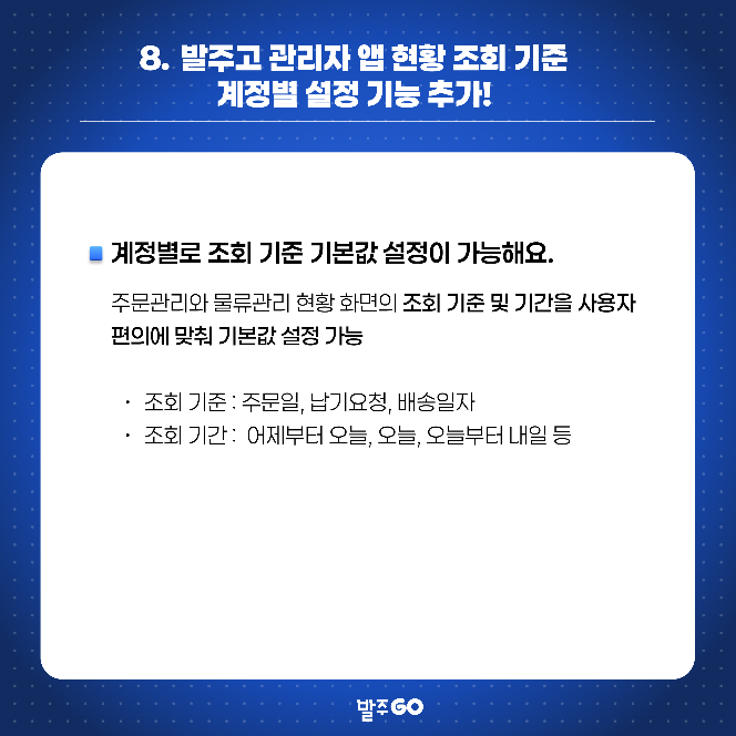 8. 발주고 관리자 앱 현황 조회 기준